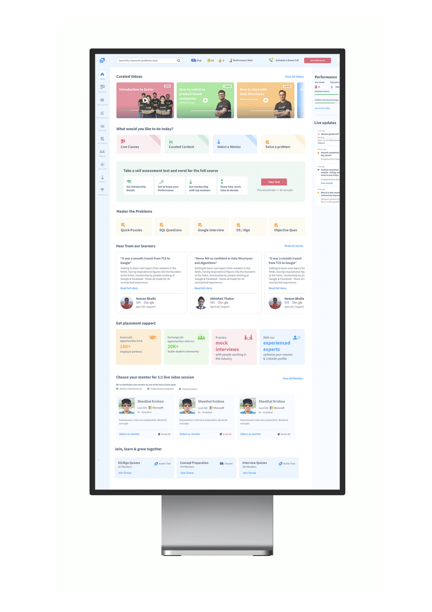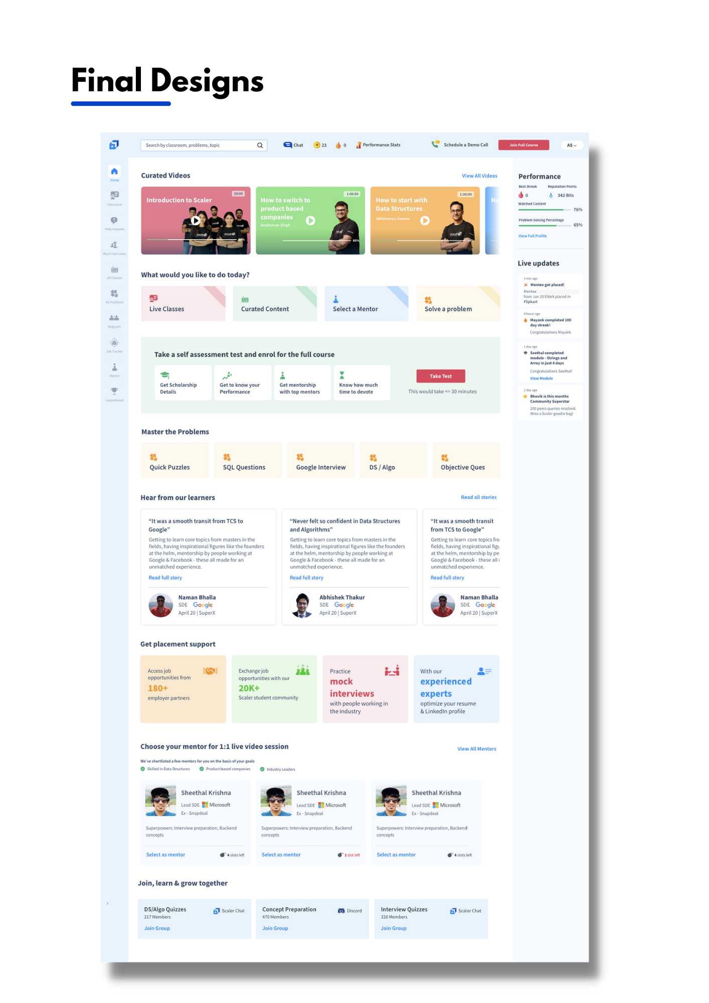 Scaler Academy Learning Portal - UX Case Study